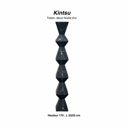 Sculpture totem en ardoise naturelle, 180/25/25 cm, décor or, Kintsu