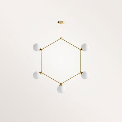 Le héros légendaire de la guerre de Troie. Inspirée par l'Art déco, la collection « Laiton et opalines » est une ode à la simplicité. Des luminaires / Suspensions aux lignes pures où les formes et les courbes géométriques sont à l'honneur. Le laiton et le verre sont les deux seuls matériaux de cette collection.6 globes en verre soufflé opale (12 cm de diamètre).6 LED E14, 750 lumens, 2 700 Kelvin, 6 W, intensité variable. Conçu et produit en Belgique. Délais : 4-6 semaines. Veuillez envoyer une demande pour du sur mesure et frais d'expédition