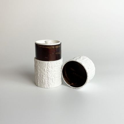 Boîte à thé en écorce mate noire et blanche