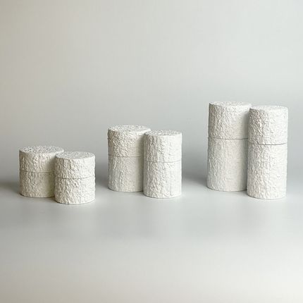 Un projet réimagine Kaba-zaiku d'un point de vue moderne, en le transformant en une œuvre d'art contemporain. Une peinture blanche ou noire mate est appliquée pour améliorer la texture naturelle et organique de l'écorce de cerisier, en soulignant ses irrégularités uniques. Cette approche permet également d'utiliser des matériaux qui étaient traditionnellement difficiles à intégrer, ce qui permet d'utiliser plus efficacement des ressources limitées. À l'intérieur, la boîte à thé est fabriquée selon des techniques traditionnelles, la finition rouge polie créant un contraste saisissant avec l'ext