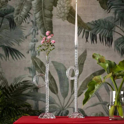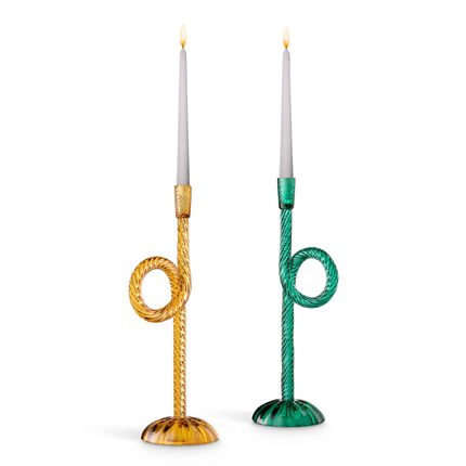 Bougeoir en verre de Murano soufflé à bouche coloréAina Kari rend hommage à la ville lagunaire de Venise. Les nœuds et les cordes font partie de la vie quotidienne des Vénitiens. Ce bougeoir original et contemporain met en valeur l'expertise en matière de torsion du verre soufflé à 360 degrés.