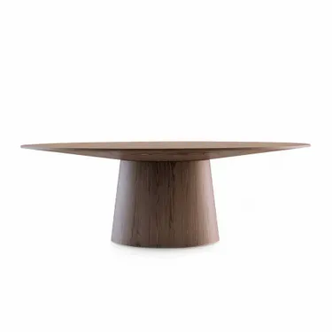Table à manger avec une base ovale fixe et un plateau en placage de noyer naturel de 0,5 mm d'épaisseur. Une pièce de style moderne avec un design original et innovant, qui combine également l'élégance caractéristique de nos meubles avec le plus grand confort et fonctionnalité.
