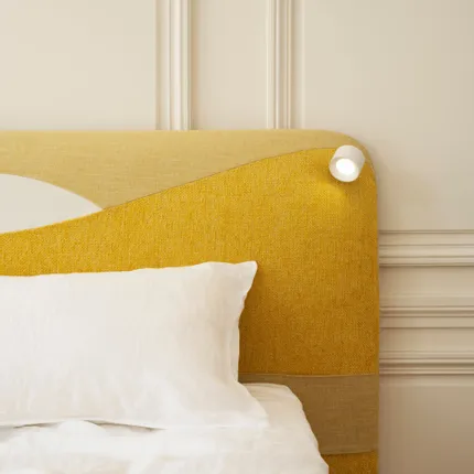 Point du jour" est la nouvelle tête de lit dessinée par l'architecte Constance Guisset pour qui l’enjeu de cette collaboration avec Tréca est de développer toute une expérience autour de la tête de lit.
