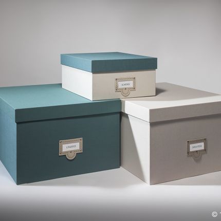 Une vaste collection de boîtes en tissu ou en similicuir - housses de vêtements et accessoires personnalisés pour votre garde-robe...