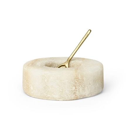 Les lampes Sel sont conçues par Iza de l'Oasis de Siwa dans le désert du Sahara. Le sel provient de l'un des grands lacs salés de l'Oasis et est recueilli par les habitants, qui traitent les gros blocs de sel. Dans le sel, vous voyez des lignes sombres, ce sont des marques après toutes les tempêtes de sable qui se produisent dans Siwa. Le sable qui arrive dans le lac devient une partie des blocs de sel et c'est ainsi que les lignes sombres sont créées. INFO: Le sel se dissout immédiatement, s'il est en contact avec de l'eau. Donc, ne placez pas les lampes à l'extérieur. Salière en laiton