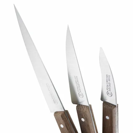 Anne-Sophie PIC, femme chef 3 étoiles au Guide Michelin, s’est associée à la Coutellerie Verdier et à l’agence de design C B Lefebvre pour créer une ligne d’ustensiles de cuisine qui répondent à des besoins précis dans la préparation culinaire.Ce set de 3 couteaux d’offices ECOOK est le premier volet de cette série, chaque couteau a une fonction précise, technique et astucieuse, à l’image de la Chef. Produit 100% Fabriqué en France.