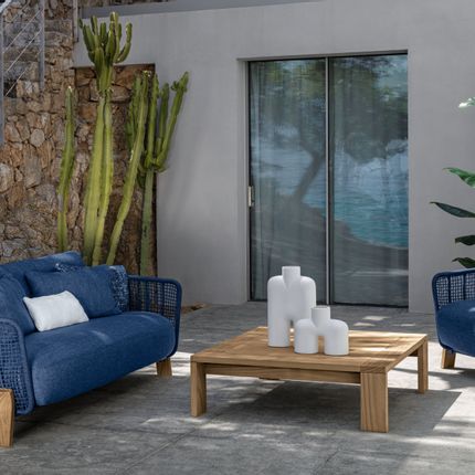 Cette collection basée sur le thème de la boîte en bois se présente avec un langage rigoureux, épuré et géométrique, et caractérisée par de grandes bandes latérales qui contiennent la coussinerie et donnent une assise profonde et accueillante. Nous avons voulu y unir des pieds en patins, créant ainsi une sorte de “flottement” du rembourrage et des proportions. La collection s’enrichit d’un rembourrage à la forme sculpturale, caractérisé par un volume tressé enveloppant.