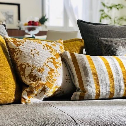 Un design classique revisité dans lequel les fils d'or originaux sont remplacés par du coton blanc qui le rendent similaire à un piquet.Un traitement particulier adoucit le velours et souligne sa tridimensionnalité. Il peut être utilisé dans les deux versets.