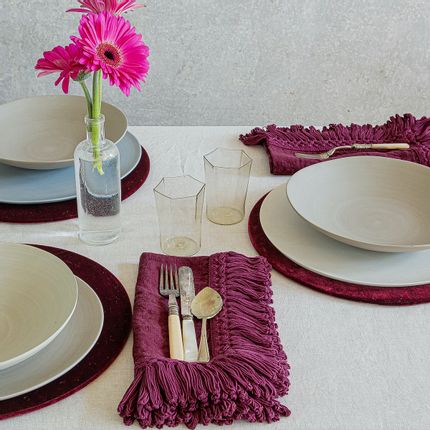 Insuffler un charme rustique et une touche décorative à n'importe quel lieu de dîner. Once Milano présente ces serviettes en lin avec une frange de 6 cm de long appliquée sur tous les côtés. Disponible dans une vaste palette de couleurs. Essayez des sets de table ou des nappes aux couleurs assorties pour créer un décor de table à la fois audacieux et élégant.