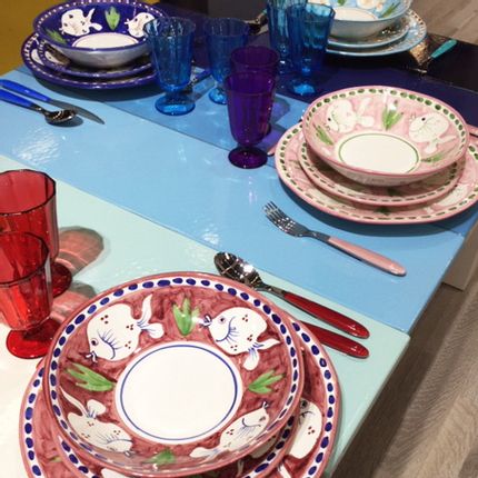 La fabrication de ce produit a été réalisée selon des procédés artisanaux et non des procédés industriels. De petites imperfections, un affaissement et des ondulations de la surface sont délibérément présents et ils sont une caractéristique du produit, prouvant le procédé de fabrication artisanale. 6 couleurs spectaculaires et 37 pièces uniques.
