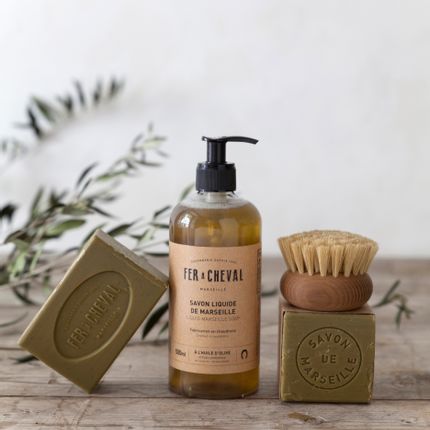 Depuis 1856, Fer à Cheval ancré dans le patrimoine vivant, est fier de confectionner un produit phare de la culture marseillaise avec tradition et passion. Le style à la française s'invite dans la salle de bain ou la cuisine, un cadeau Made in Marseille pour le plaisir d'offrir. Ce savon est fabriqué dans la pure tradition ancestrale avec des huiles végétales, sans ajout de parfum, colorant, conservateur ou graisses animales. Il existe aussi dans sa collection premium.